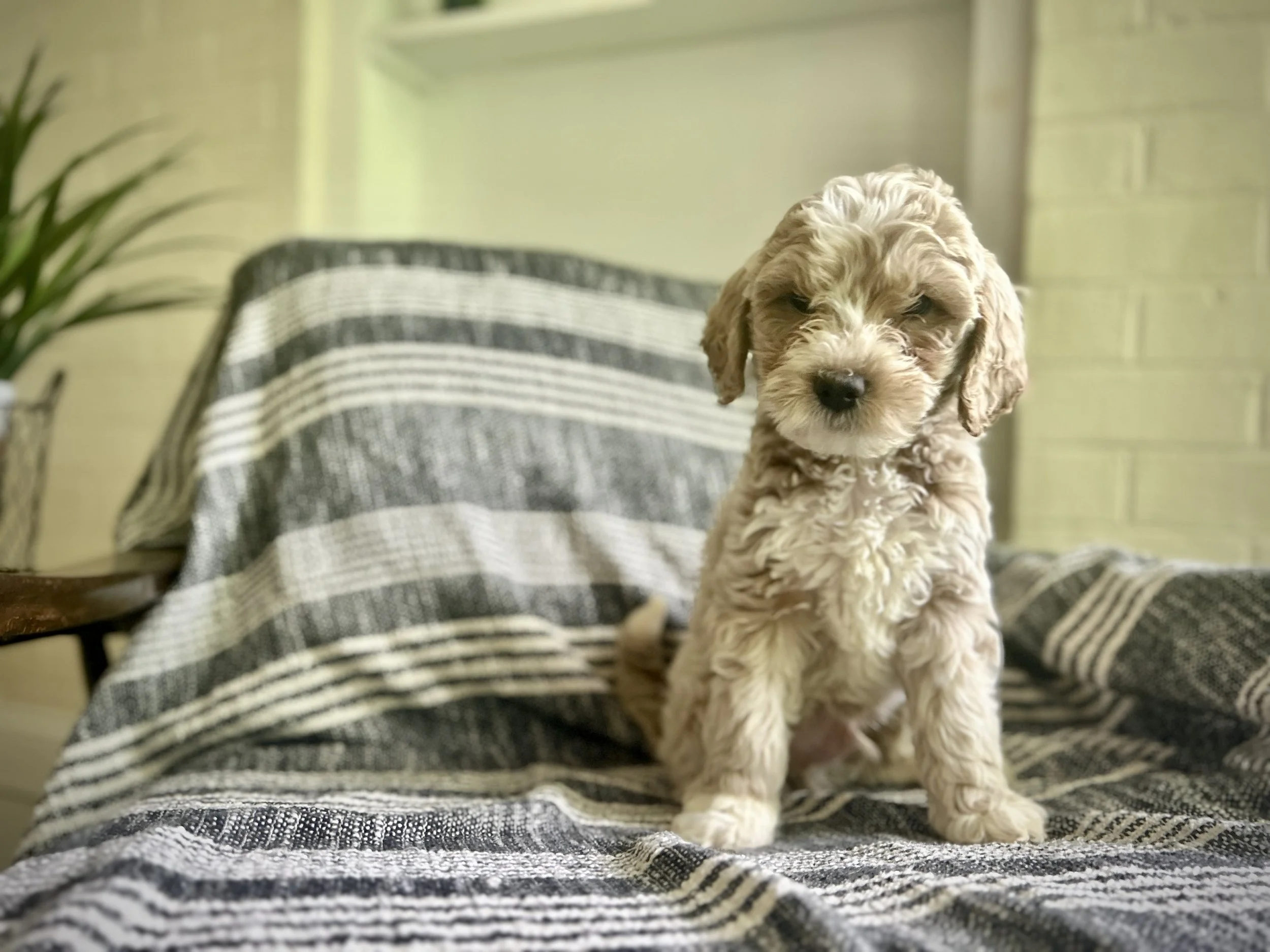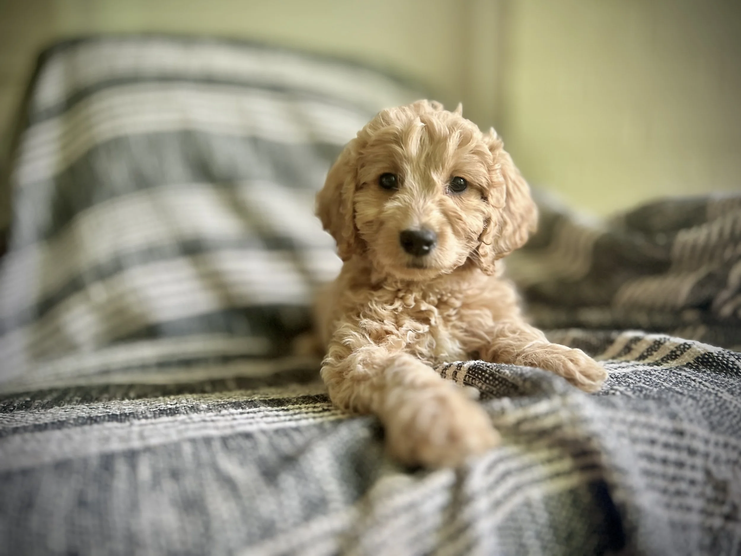 Our puppies are multigenerational mini Goldendoodles meaning their parents and grandparents are Goldendoodles, not a purebred Golden Retriever or Poodle. This makes for the hypoallergenic and non-shedding coat.