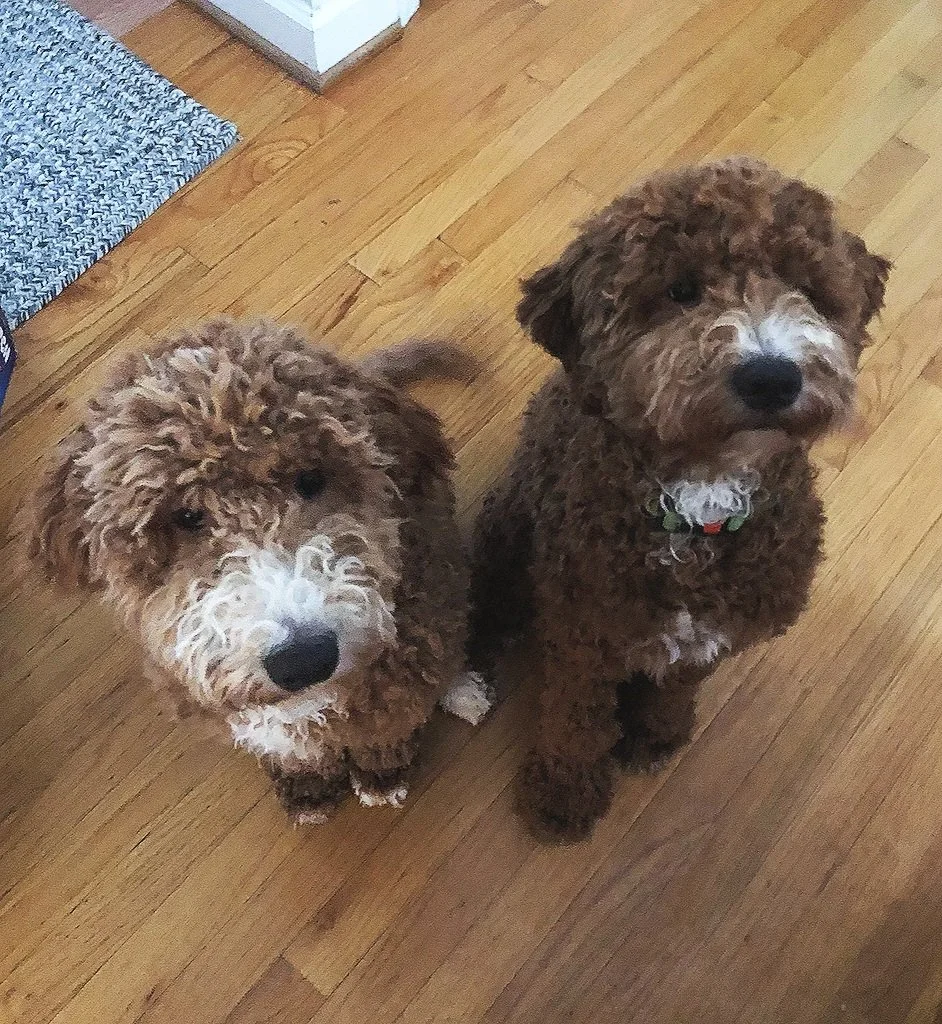 Axel and Zam are our gorgeous apricot mini multigenerational Goldendoodle boys. They are gentle and oh, so playful. Axel wears his tuxedo chest well. Zam’s favorite activity is playing ball.